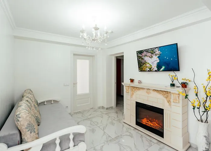 The spacious Двухкомнатная Квартира С Гостиной Chisinau apartment is located 2.5 km from the Ștefan cel Mare Central Park and a 16-minute walk from the Rose Valley.